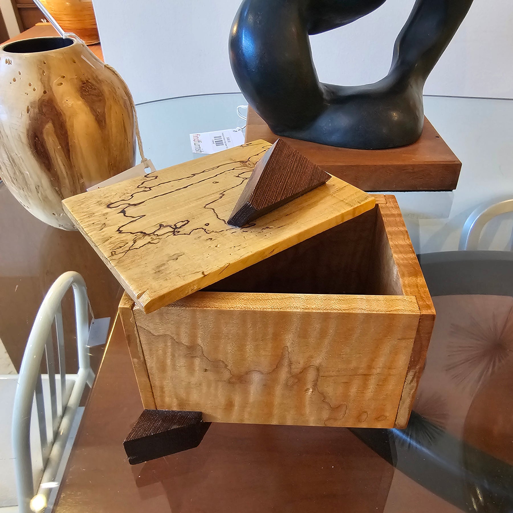 Artist Signed Mixed Wood Lidded Box. Spalted Maple and walnut.