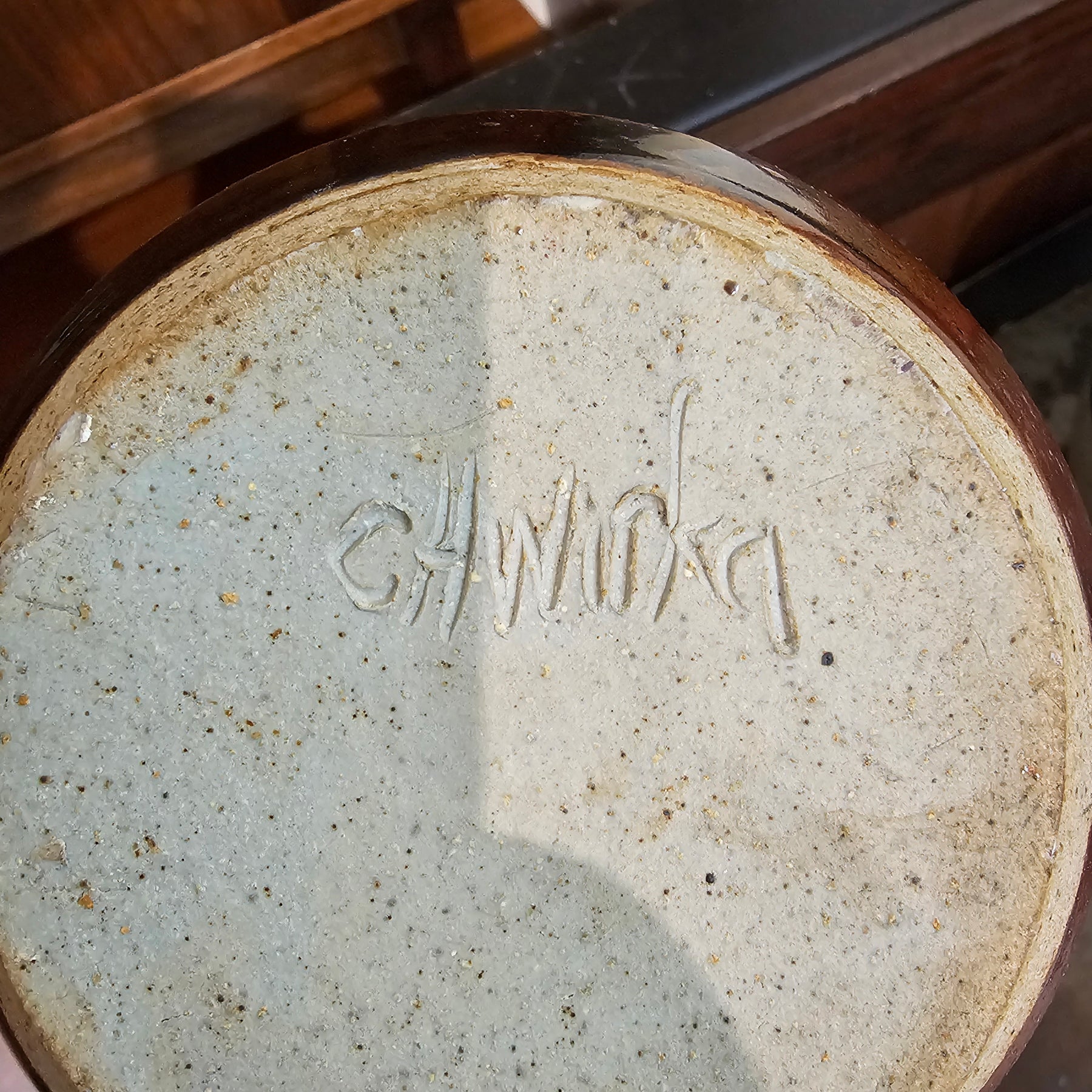 Brown & Black Studio Pottery Vase. Signed by artist.