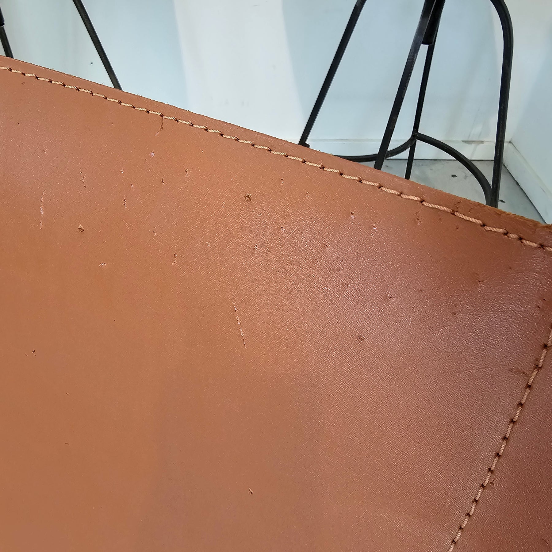 • Condition: Vintage wear, including light scratches, marks, and seem separation to one corner of the seat.
