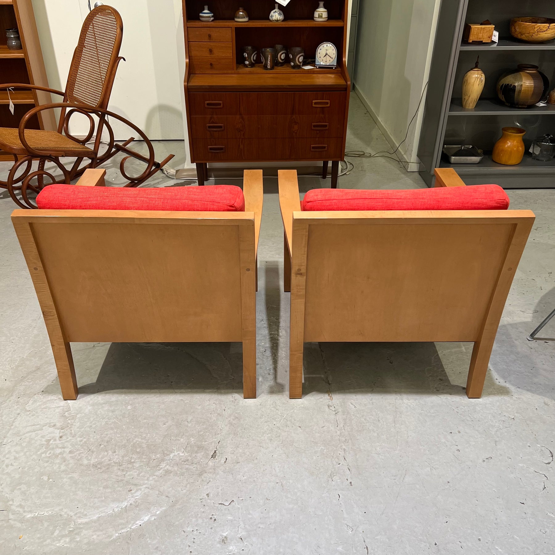 Eaton Custom Seating contemporary maple lounge chair with soft red upholstery in excellent condition.