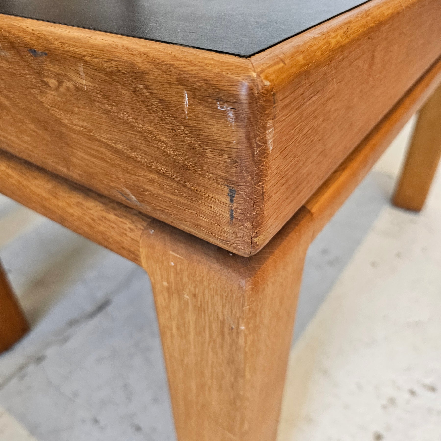 Handmade Oak Table w/ Black Top. Some minor signs of cosmetic wear.