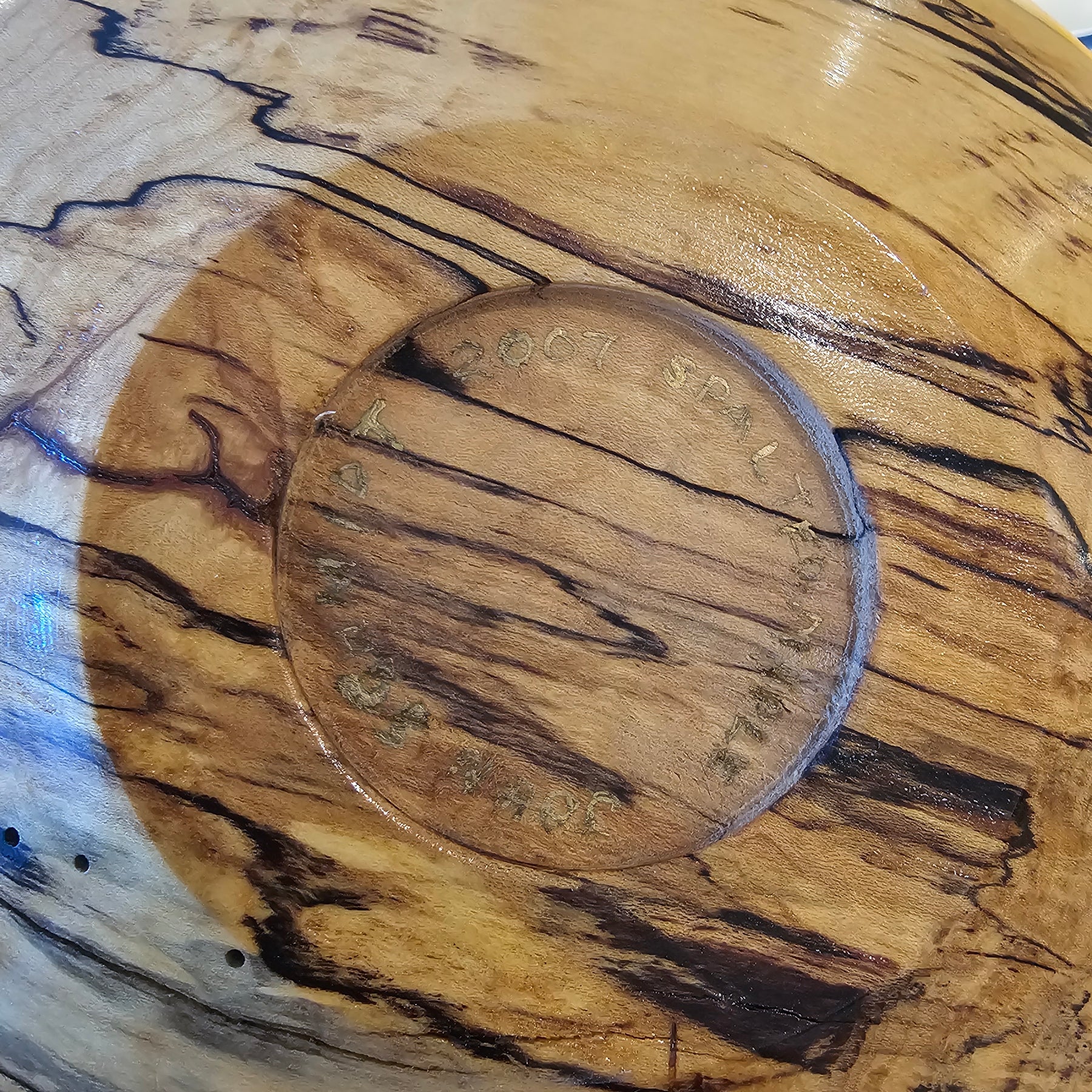 Handmade Spalted Maple Wood Bowl. Signed by artist, John Schmidt.