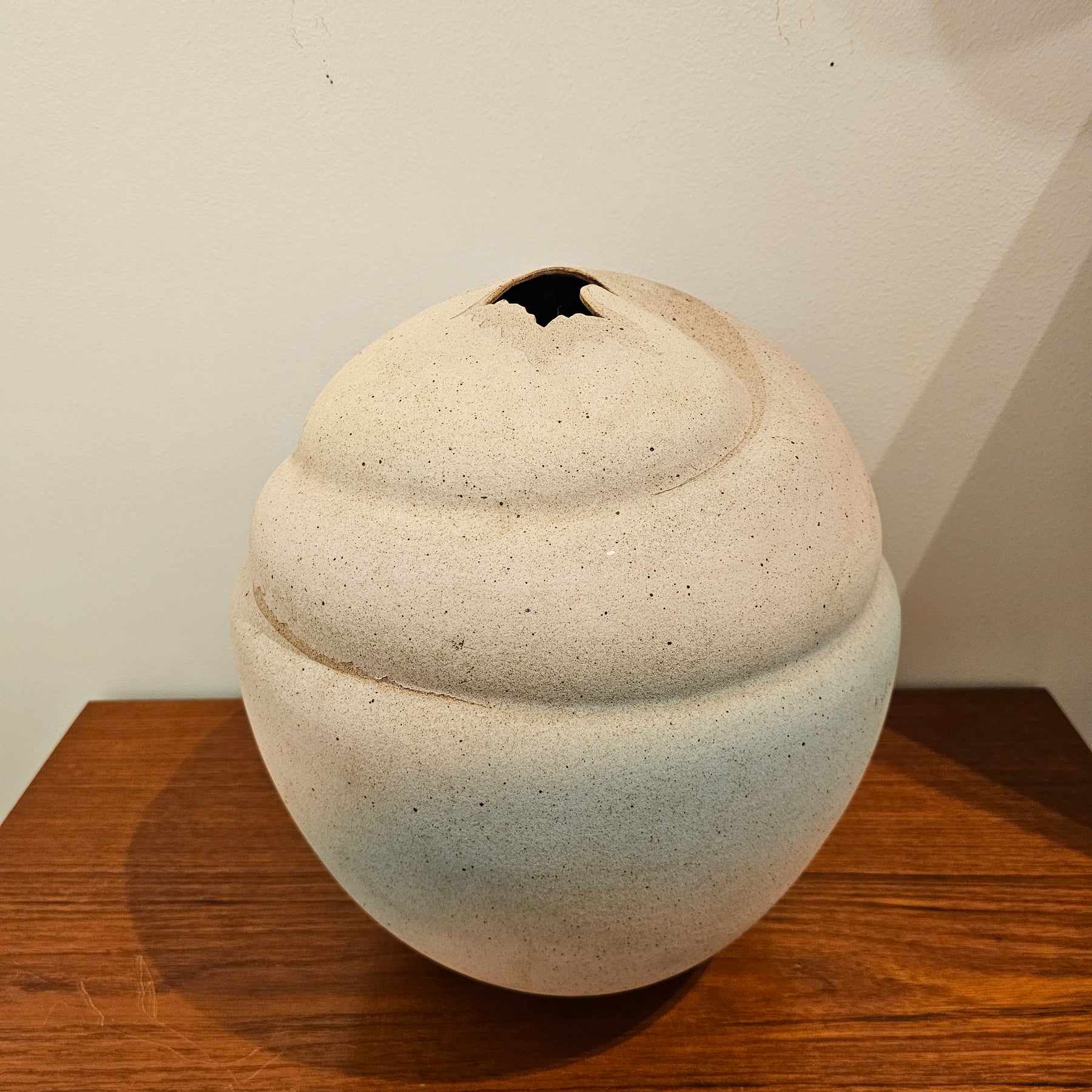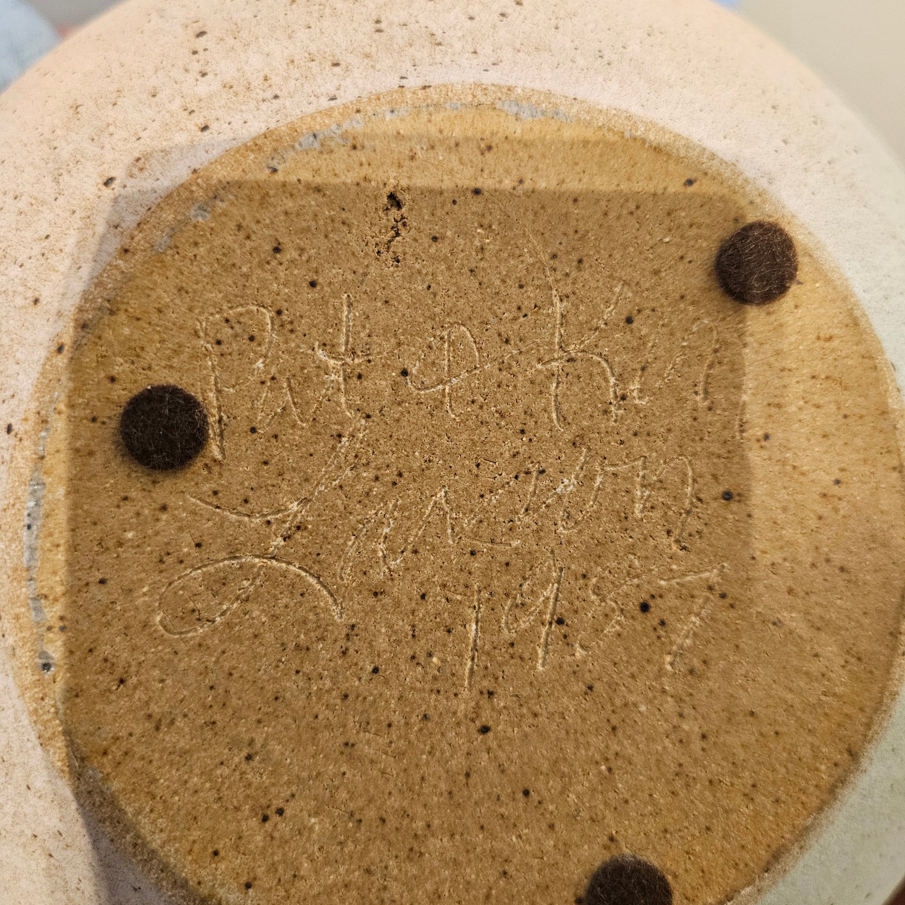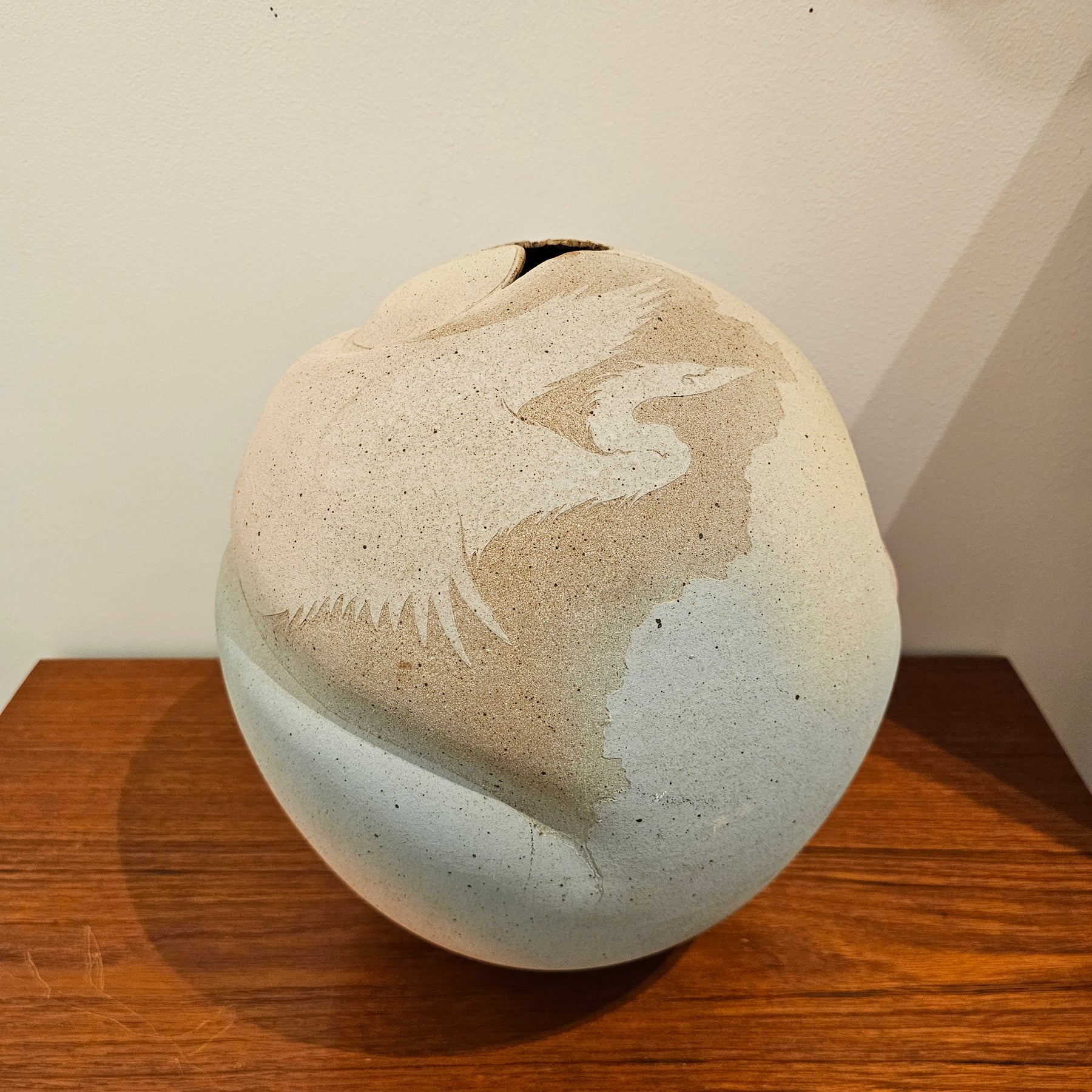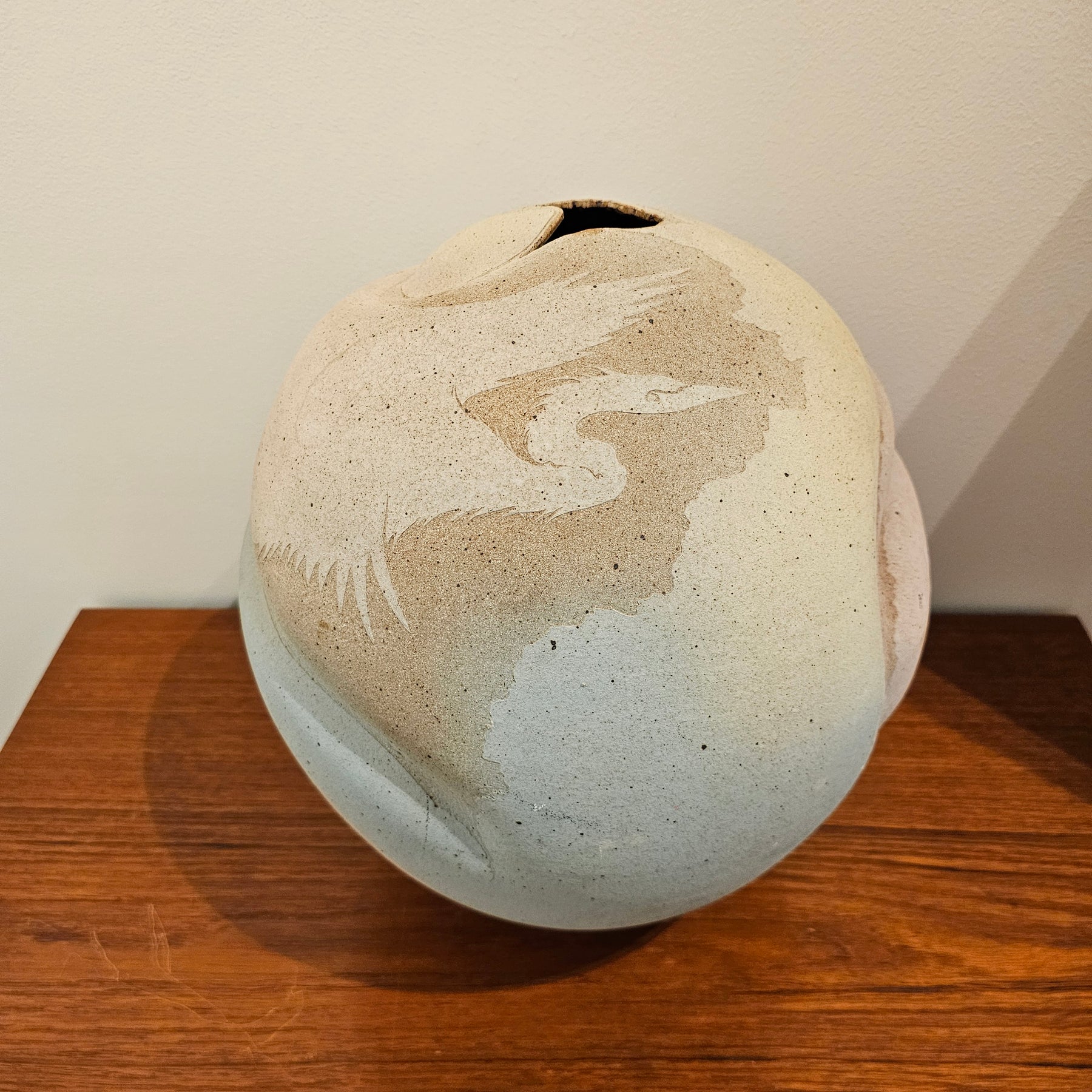Large Pottery Vase w/ Bird Detail. Great overall condition. Artist signature on bottom, "Pat & Ken Larson, 1987".