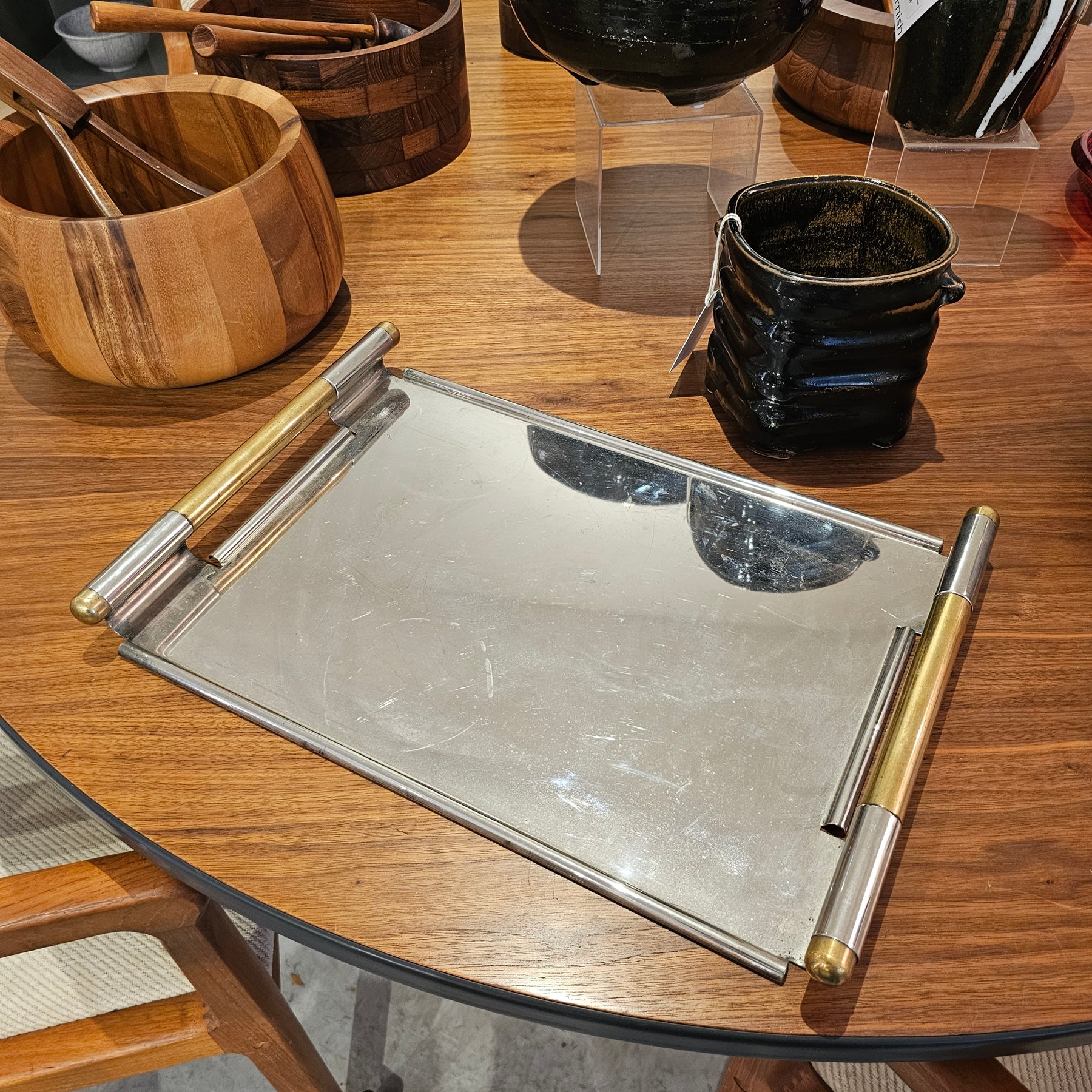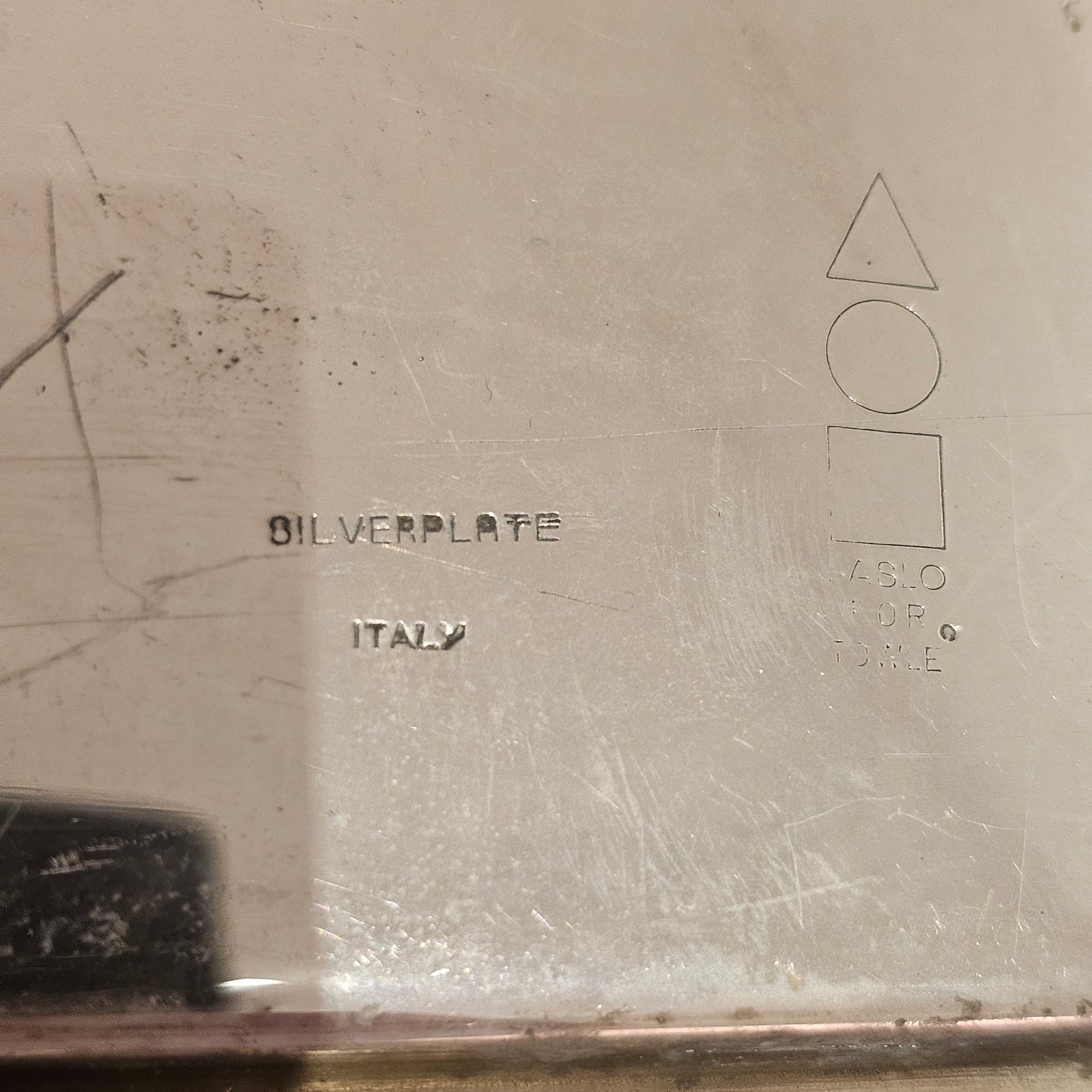 Larry Laslo for Towle Italian tray, part of the Futura Series. Silver-plate with brass accents. Good overall condition with some light tarnish and scratches.