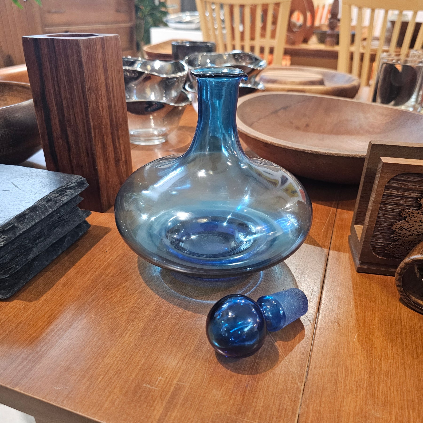 MCM Blue Art Glass Decanter. Includes original stopper.