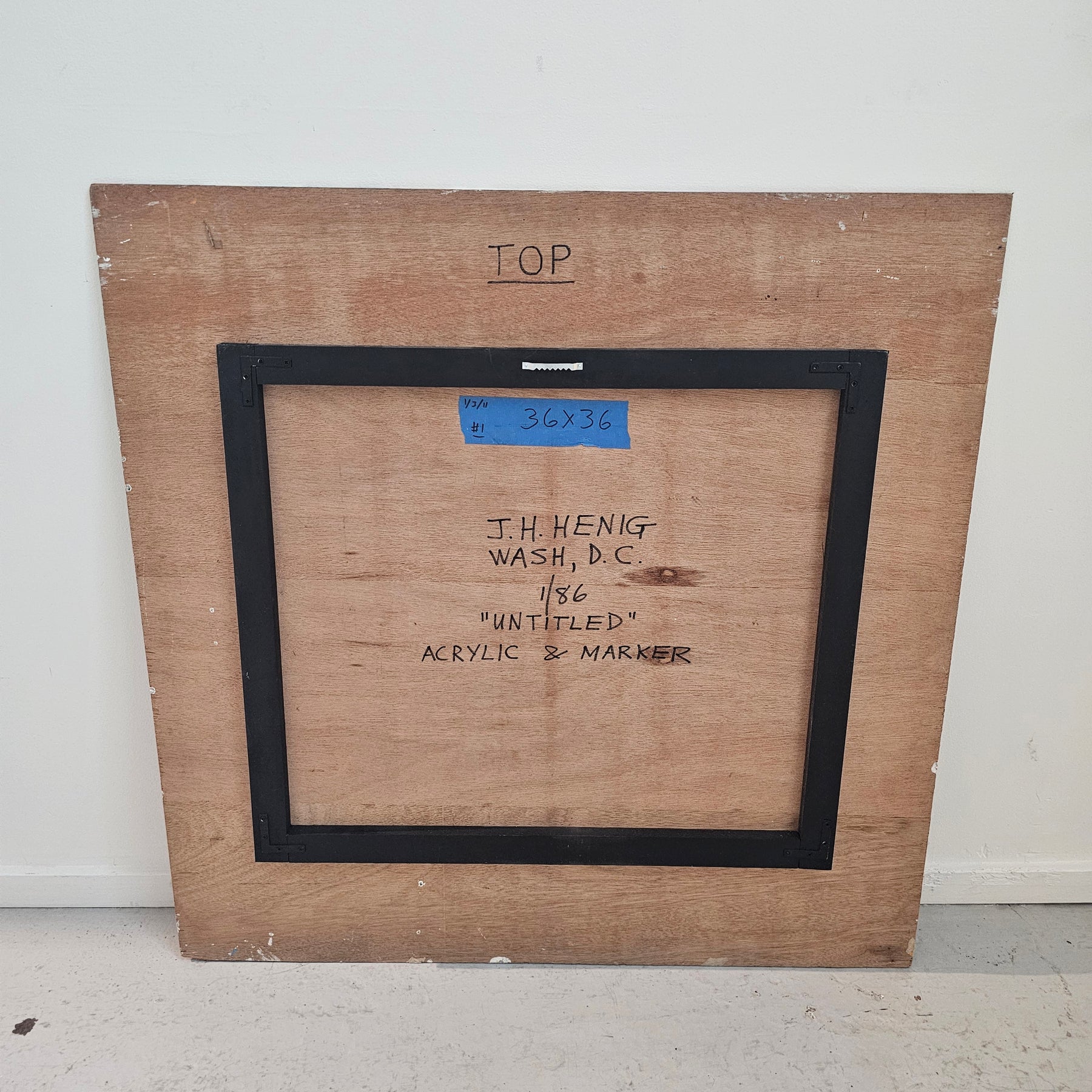 Original J.H. Henig Acrylic & Marker on Board. Untitled. Hangs from floating frame, allowing piece to lay slightly off the wall. Dated Jan, 1986