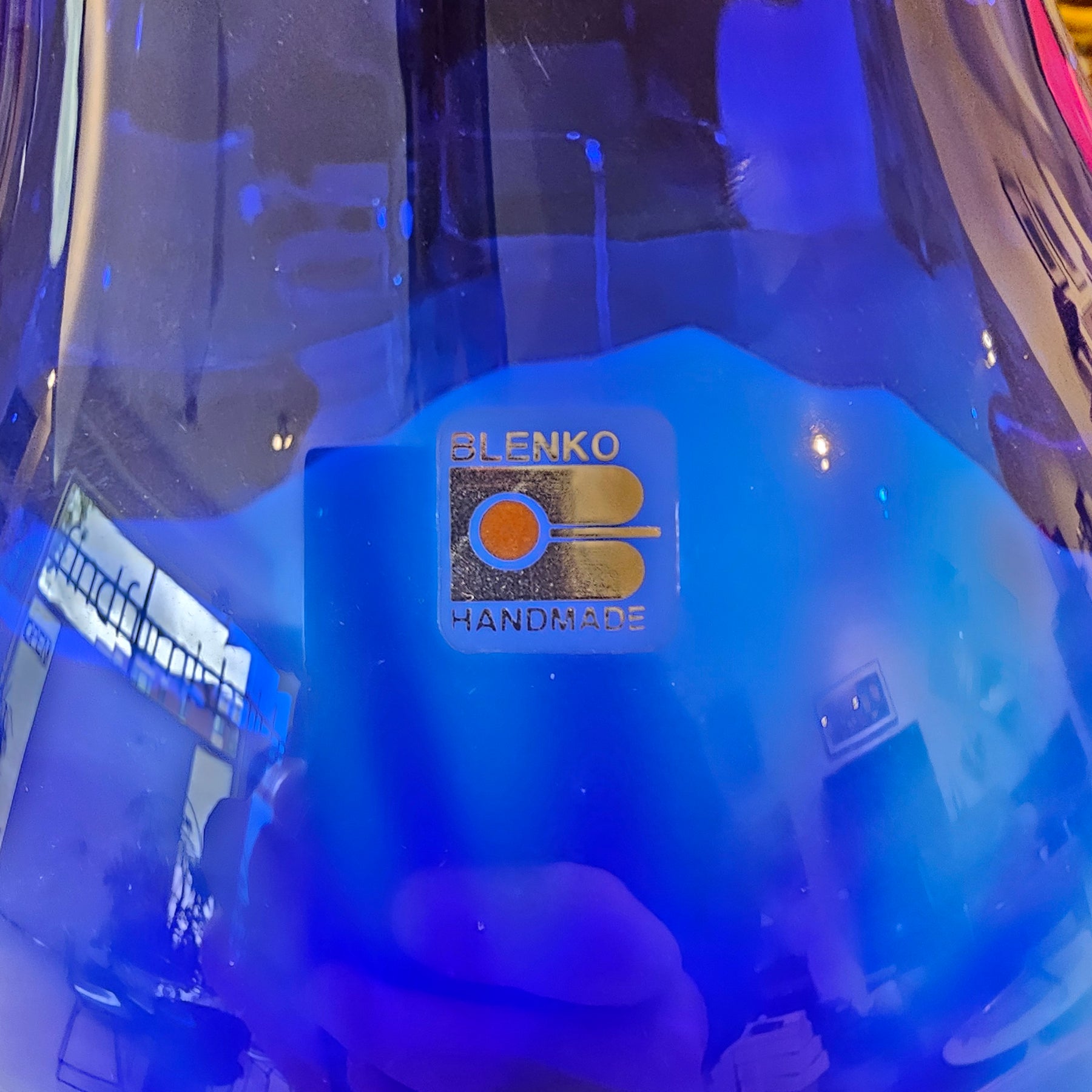 Oversize cobalt blue glass vase by Blenko. No chips or cracks. Original Blenko label intact.