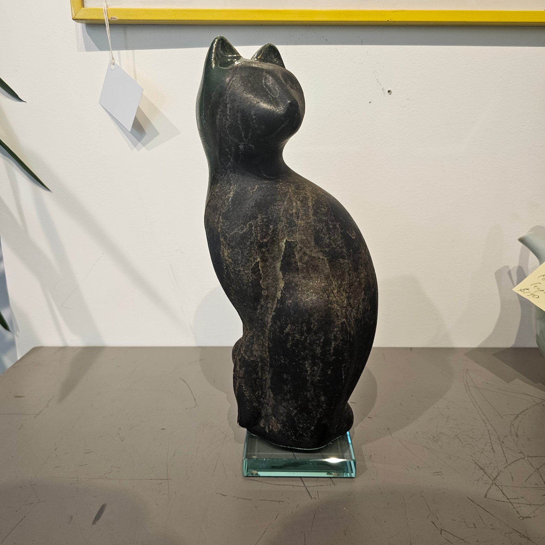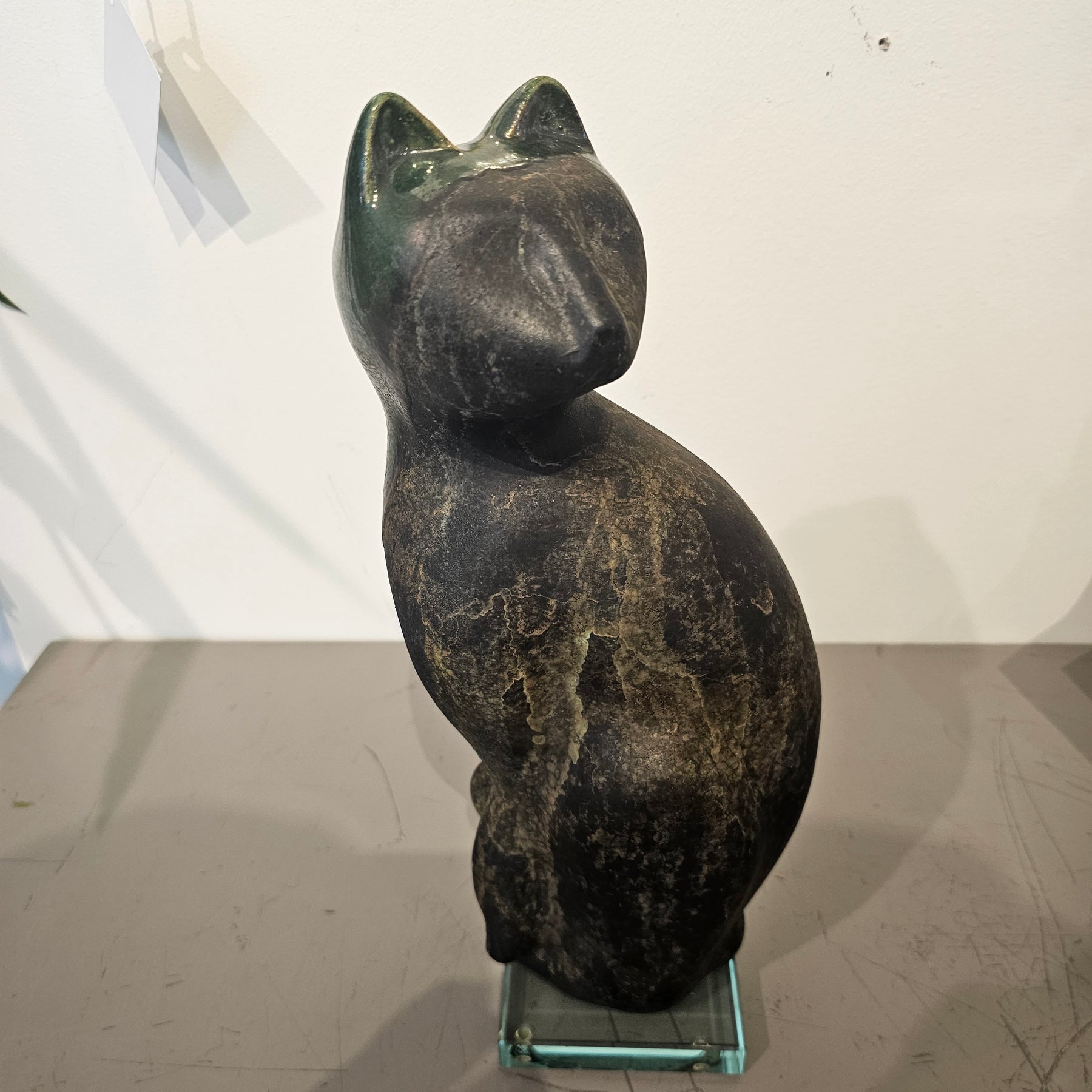 Tony Evans Raku Pottery Cat Sculpture. Signed on base.