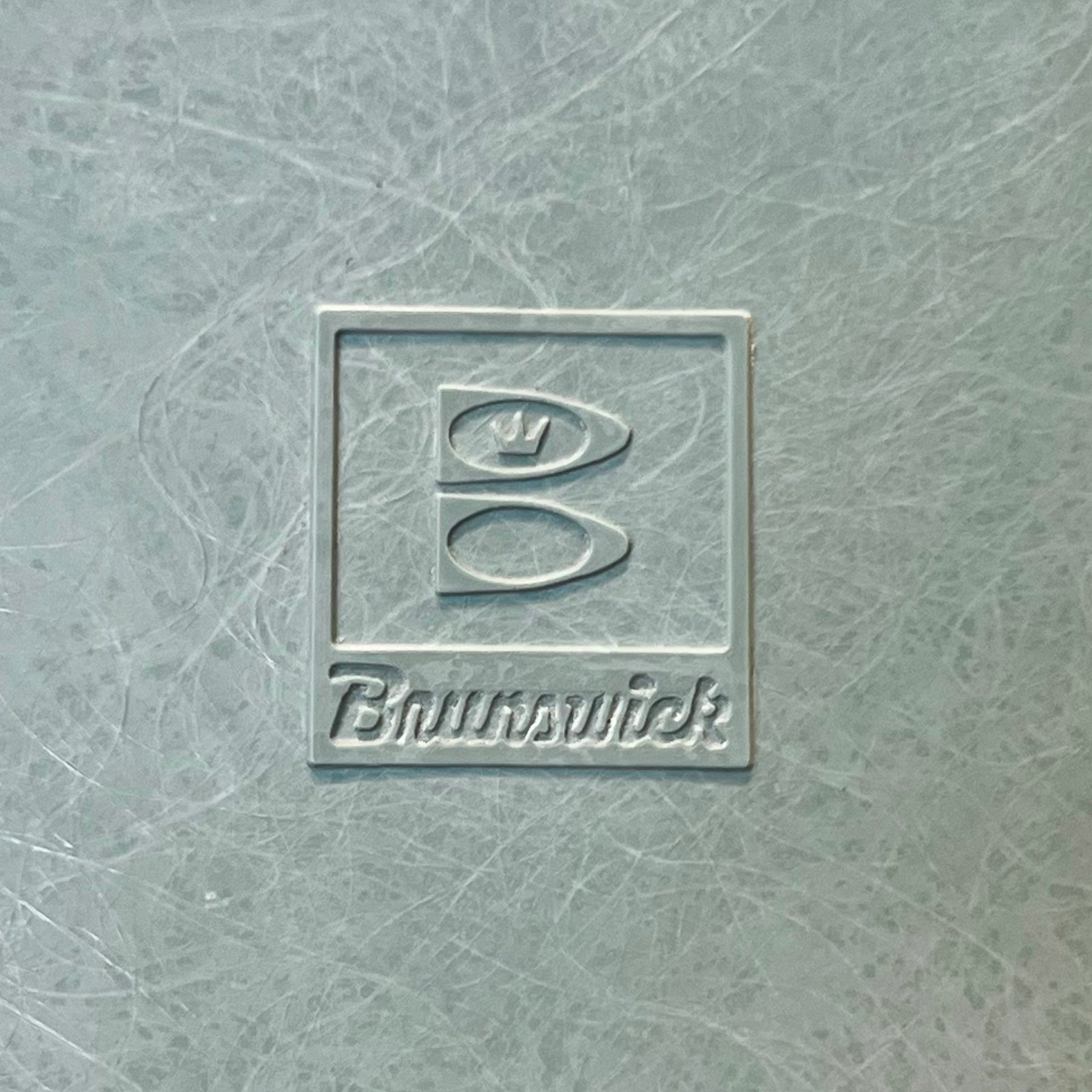 Vintage Brunswick stackable fiberglass side chairs. Great for dining or stylish auxiliary seating when you need it. Fiberglass is a wonderful pale bluish turquoise. Wear consistent with age and use, and a couple have some minor stress cracking in fiberglass (though still structurally sound).