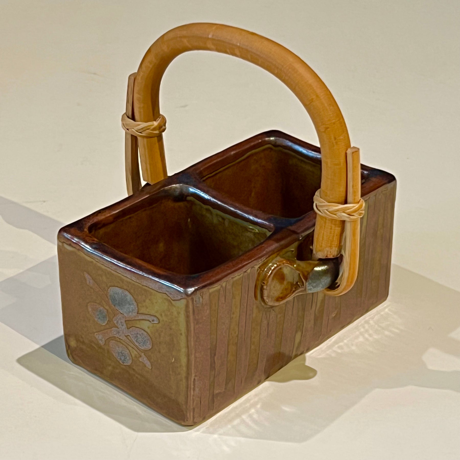 Japanese Ceramic Condiment Caddy w/Bamboo Handle