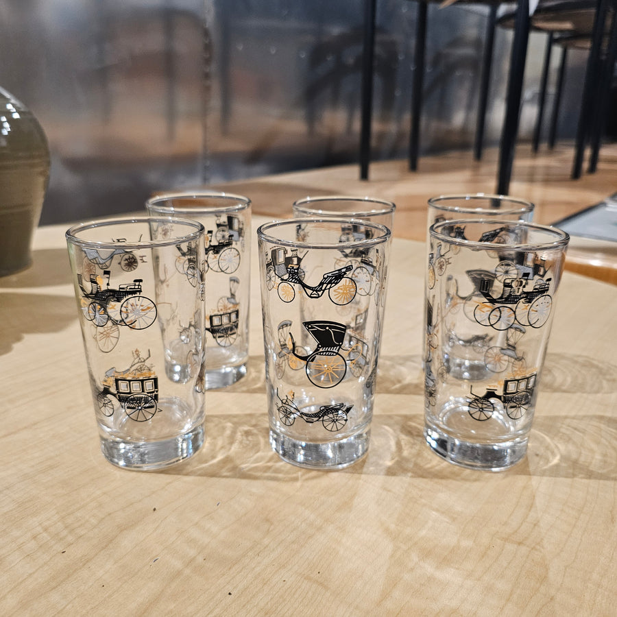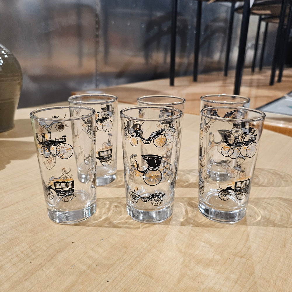 (6) Vintage Libbey "Horseless Carriage" Glasses