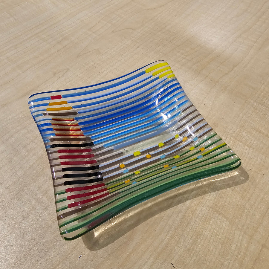 Lighthouse Themed Rainbow Glass Art Dish