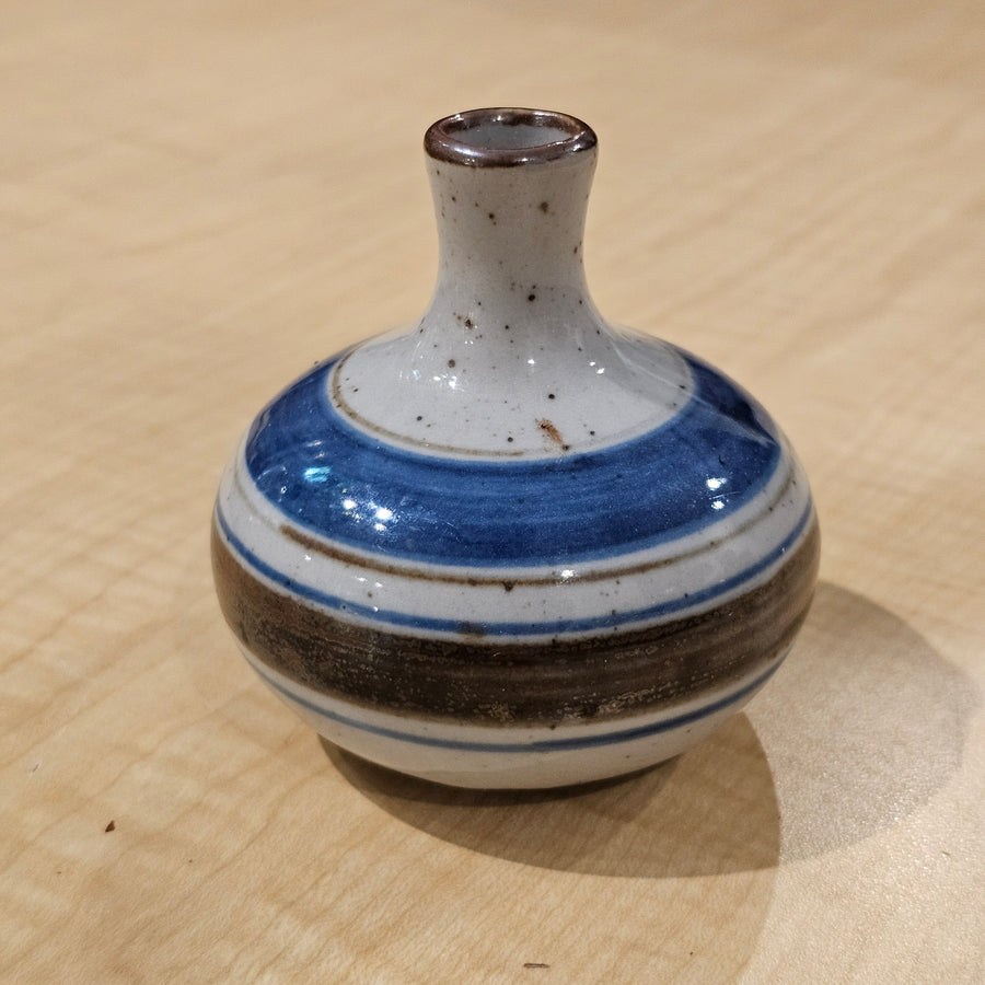 Small Blue & Brown Striped Bud Vase