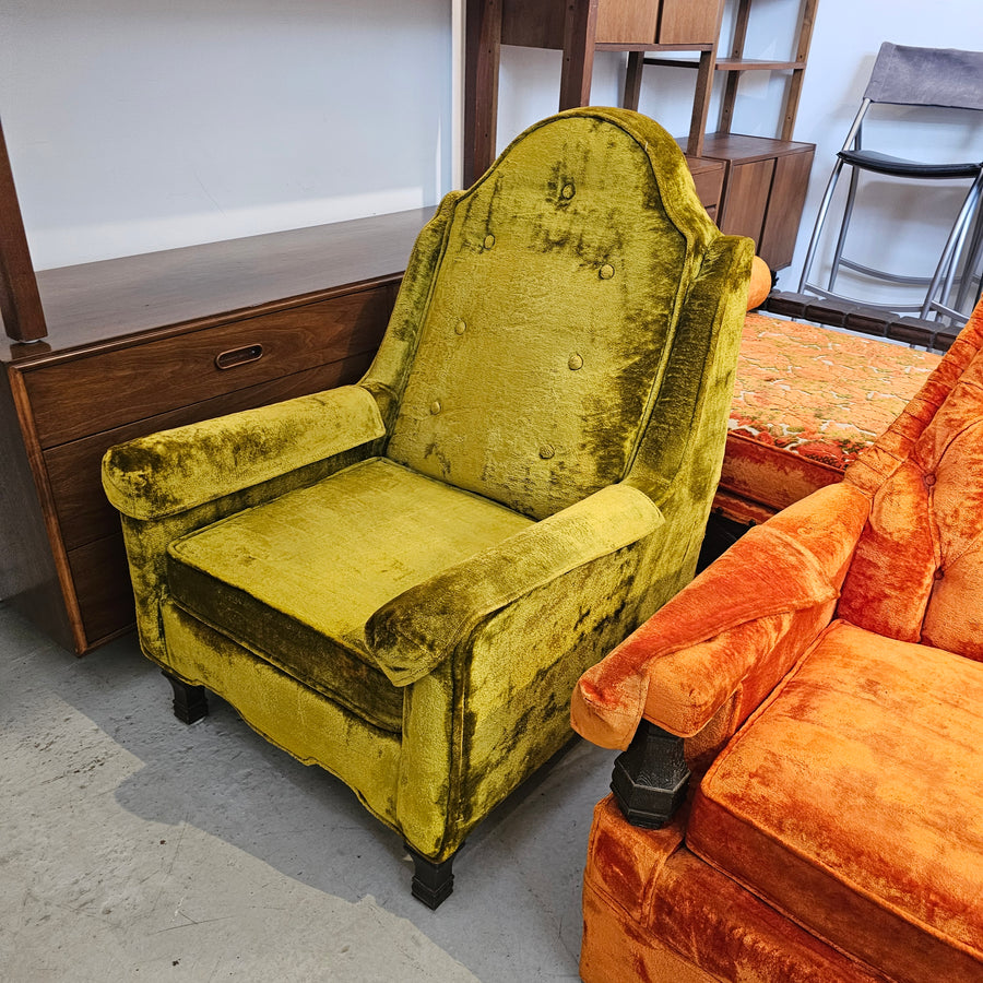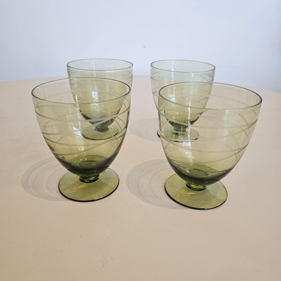 (4) Etched Green Footed Dessert Glass Bowls / Cups
