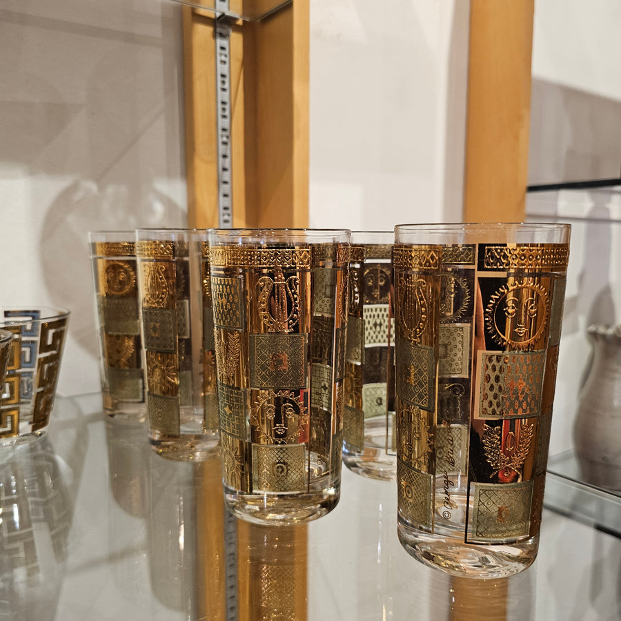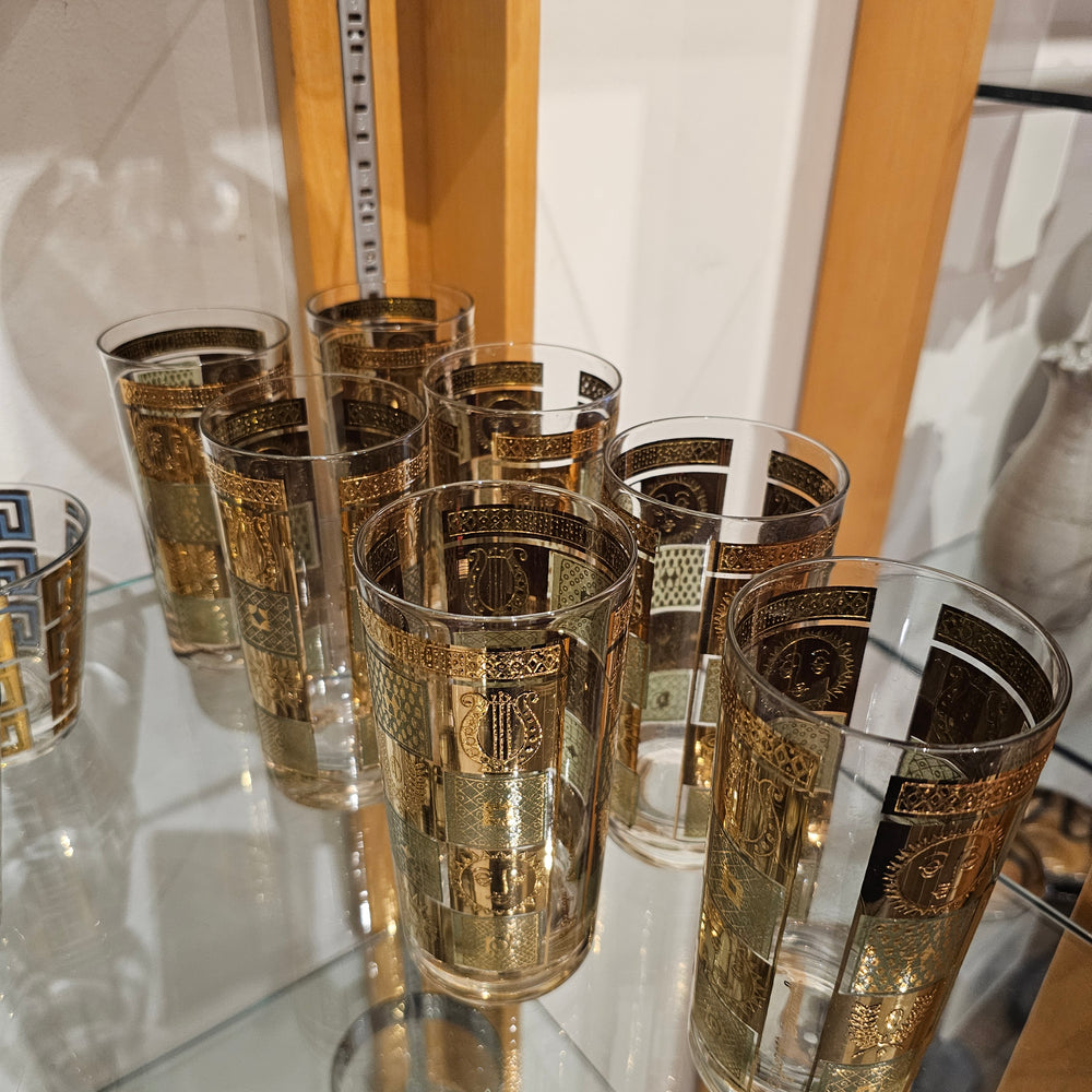 (7) Georges Briard Green Greco Roman Collins Glasses
