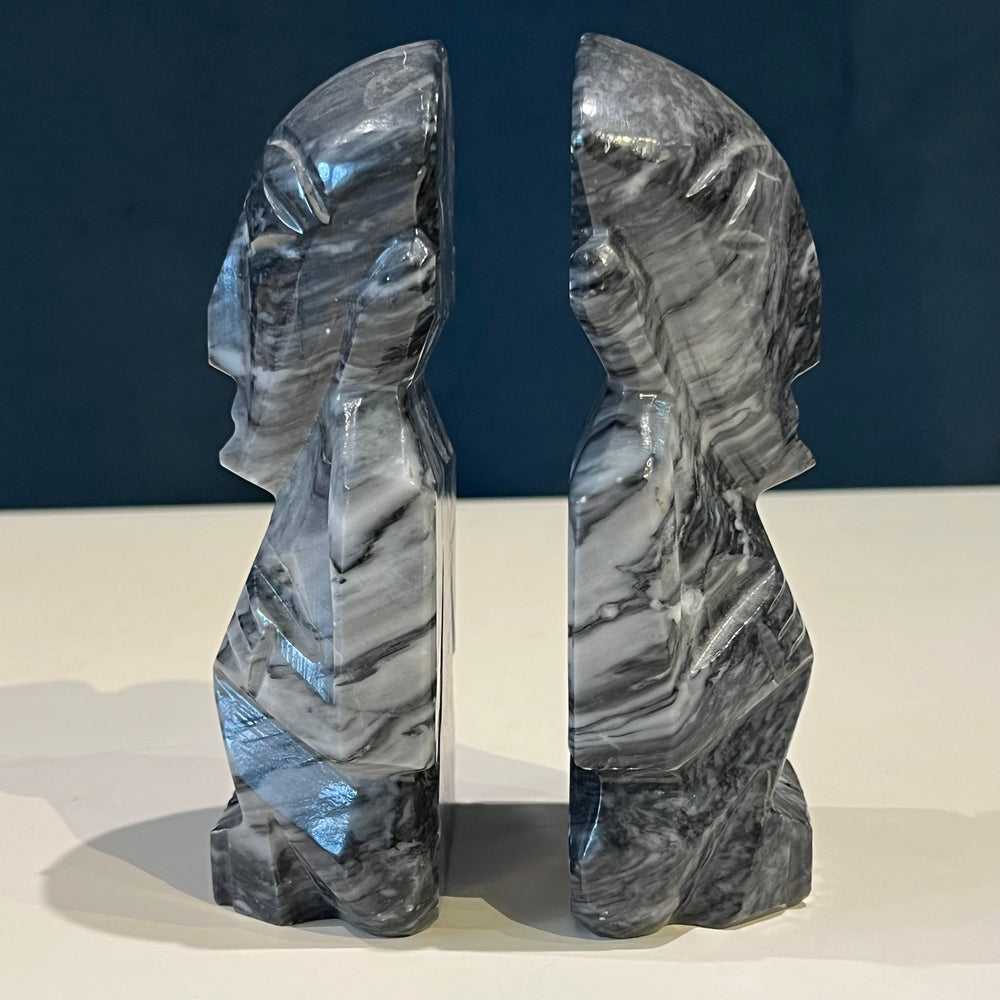 Dark Grey Marble Figure Bookends