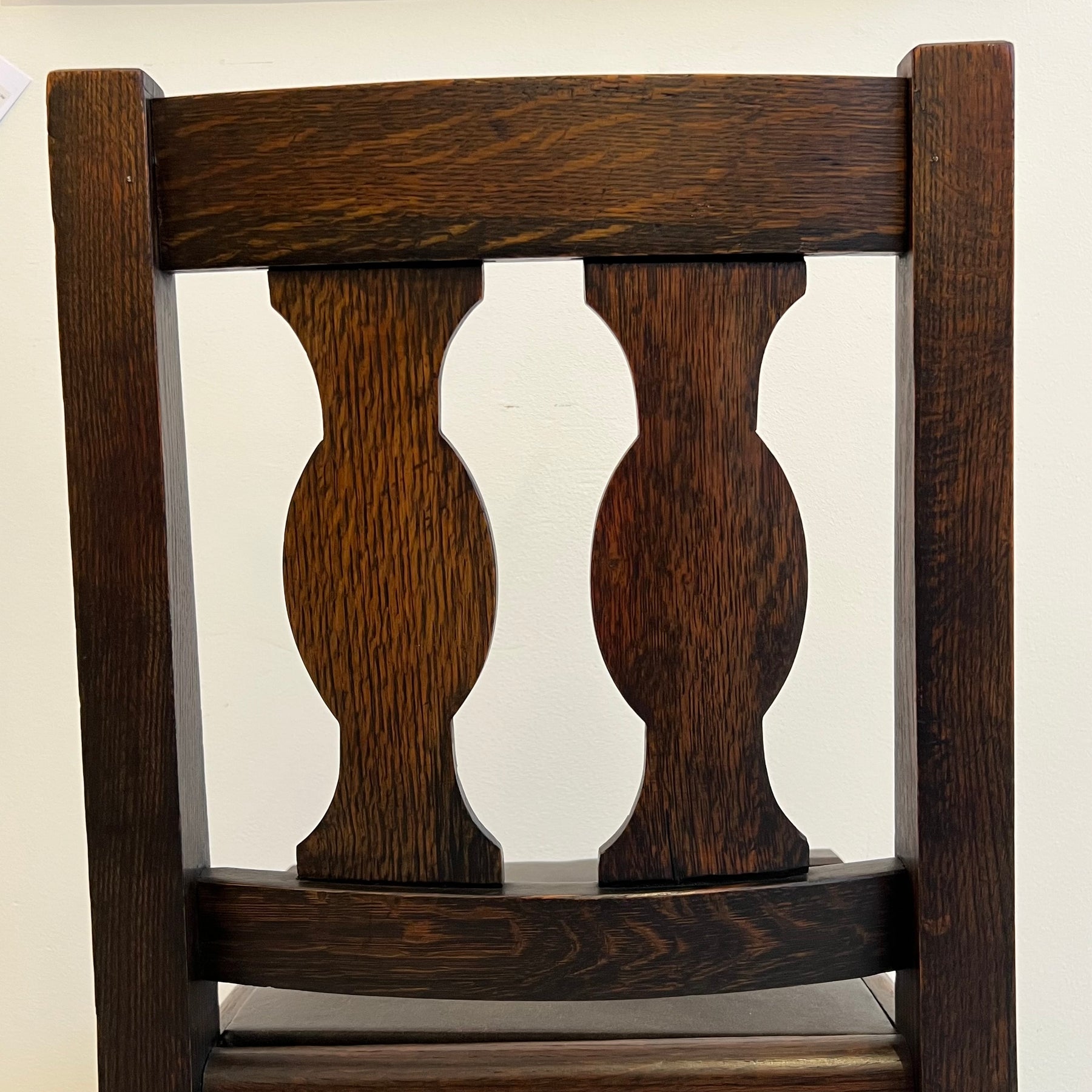Beautiful Minnesota-made mission dark oak side chair with a dark brown leather seat. Chair is in excellent original condition and frame is sturdy. Upholstery and foam are newer.