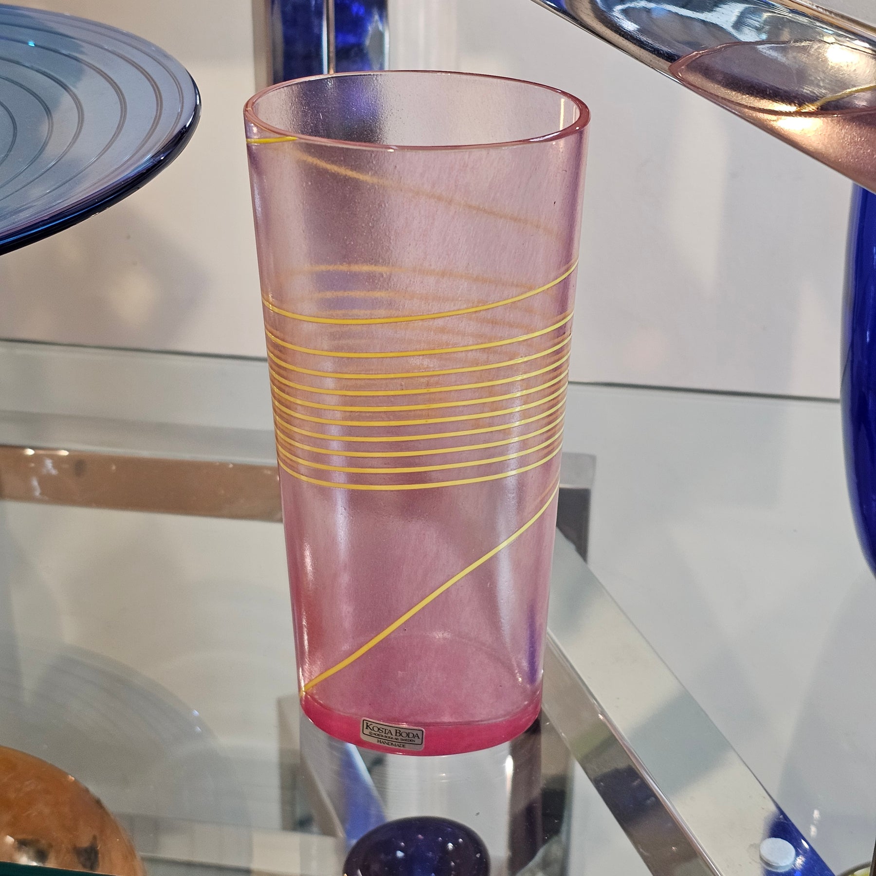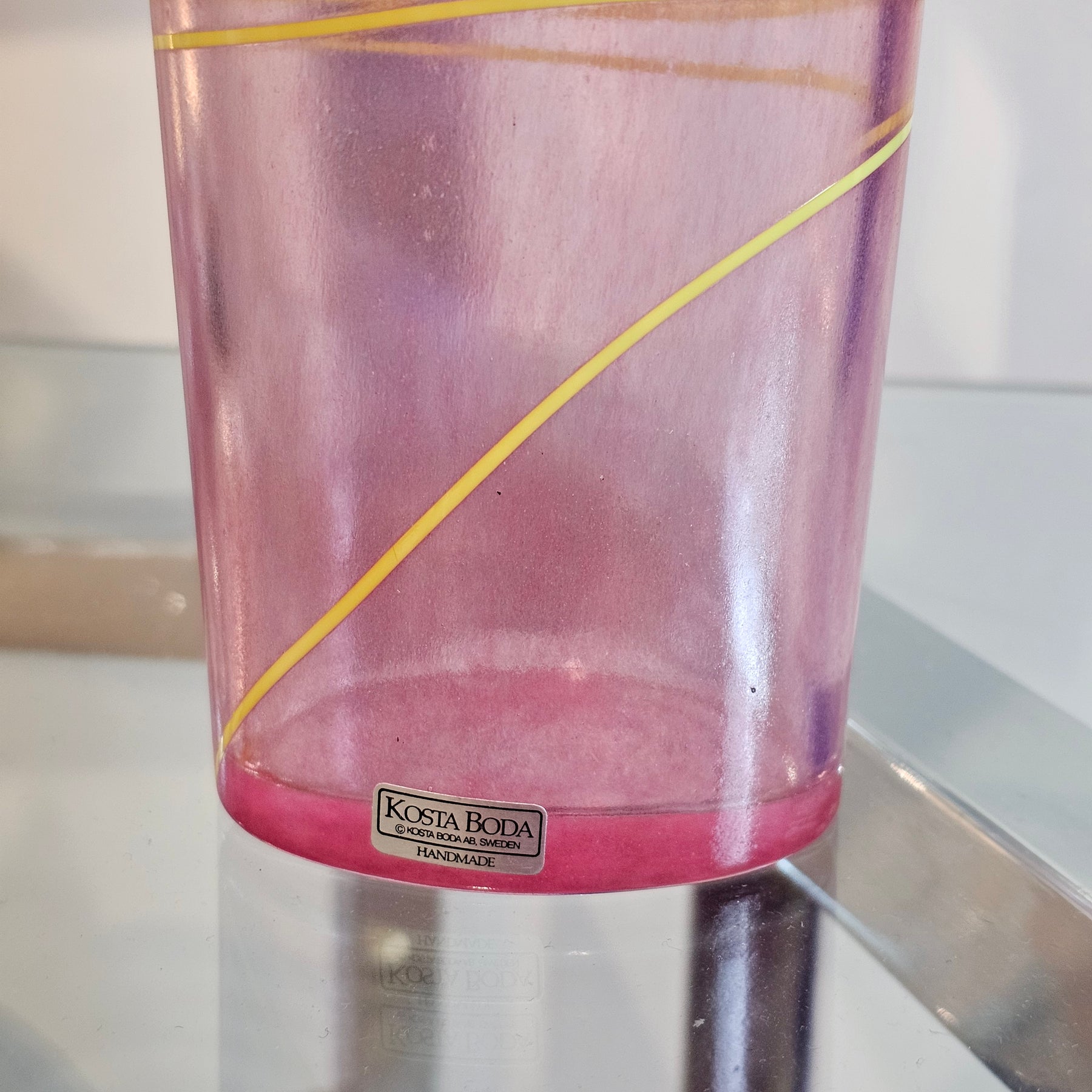 Bertil Vallien for Kosta Boda Signed Pink & Yellow Vase
